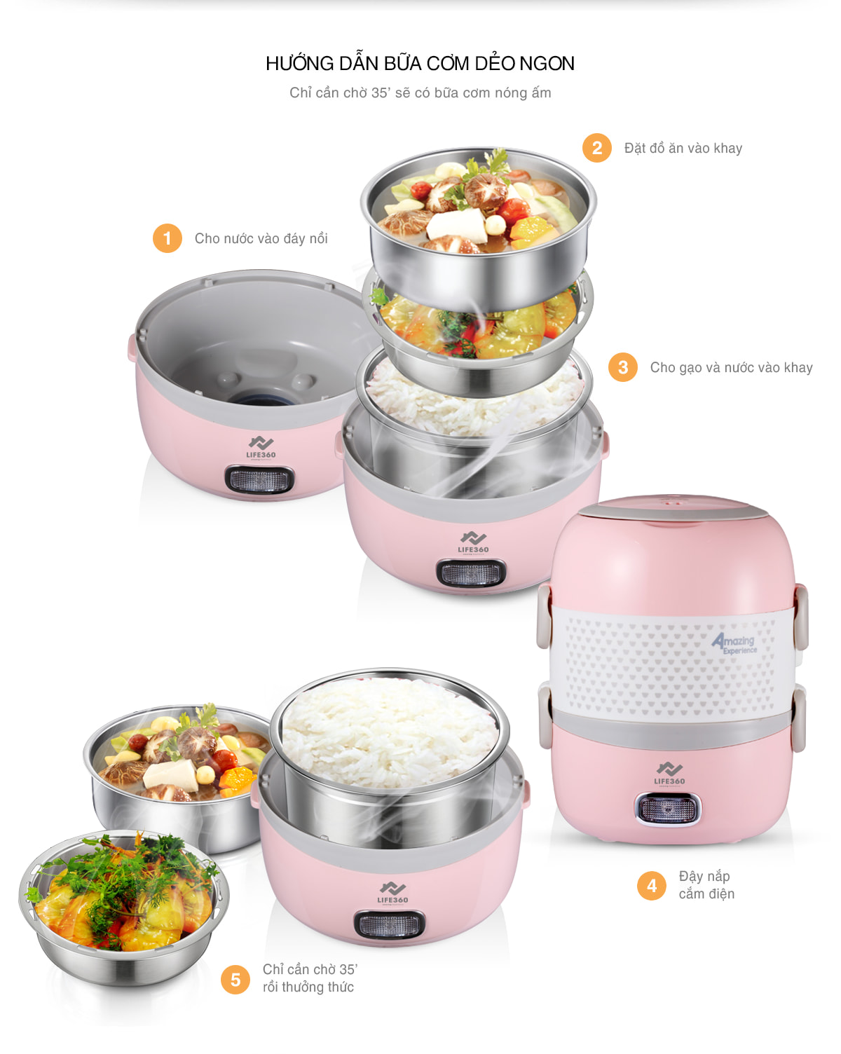 Đó là lý do Hộp Cơm Hâm Nóng trở thành giải pháp tiện lợi cho dân văn phòng, học sinh, sinh viên và cả những người làm việc tự do. Đặc biệt, Hộp Cơm Hâm Nóng Life360 mang đến trải nghiệm hiện đại: chỉ cần cắm điện, chờ vài phút là bạn đã có bữa ăn nóng hổi ngay tại chỗ làm.